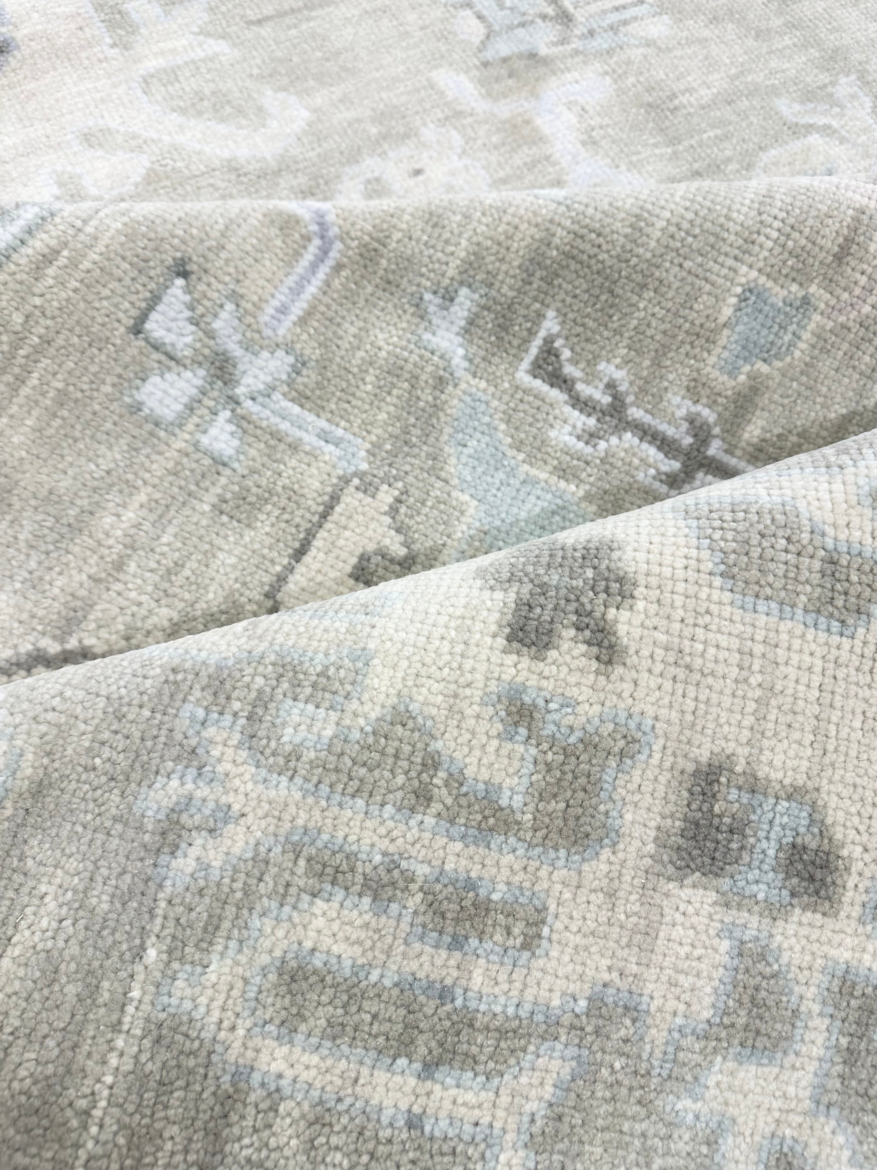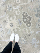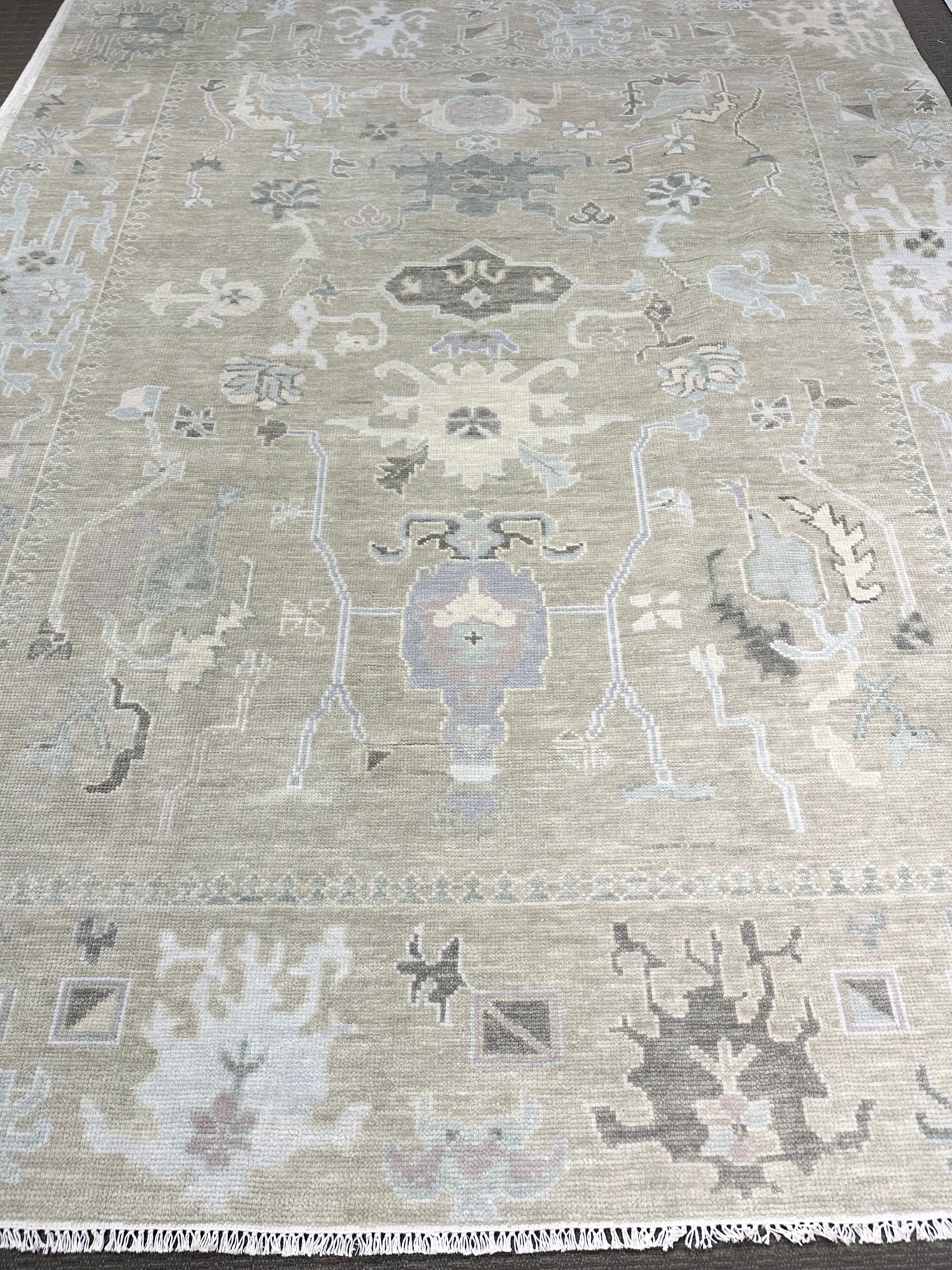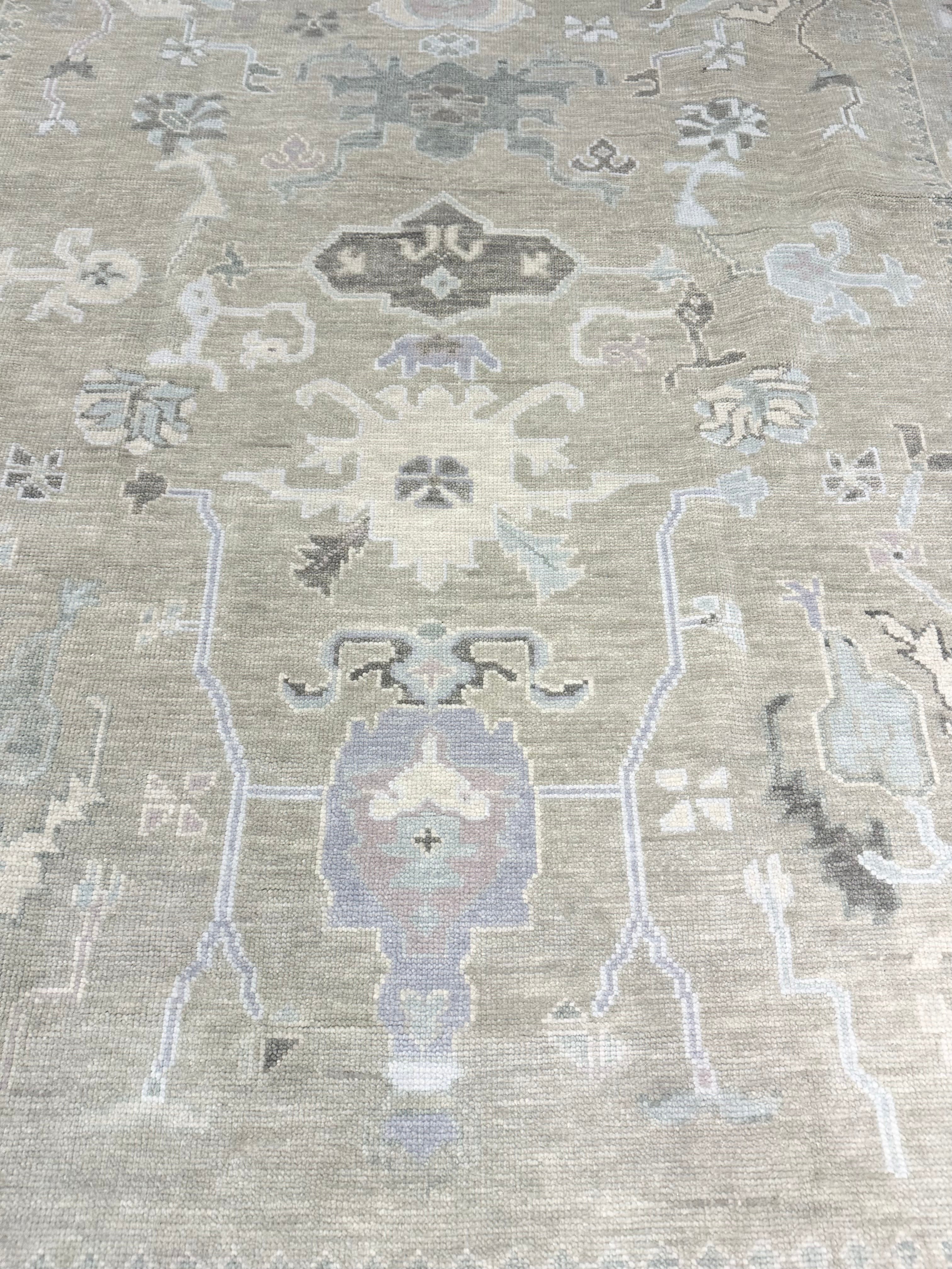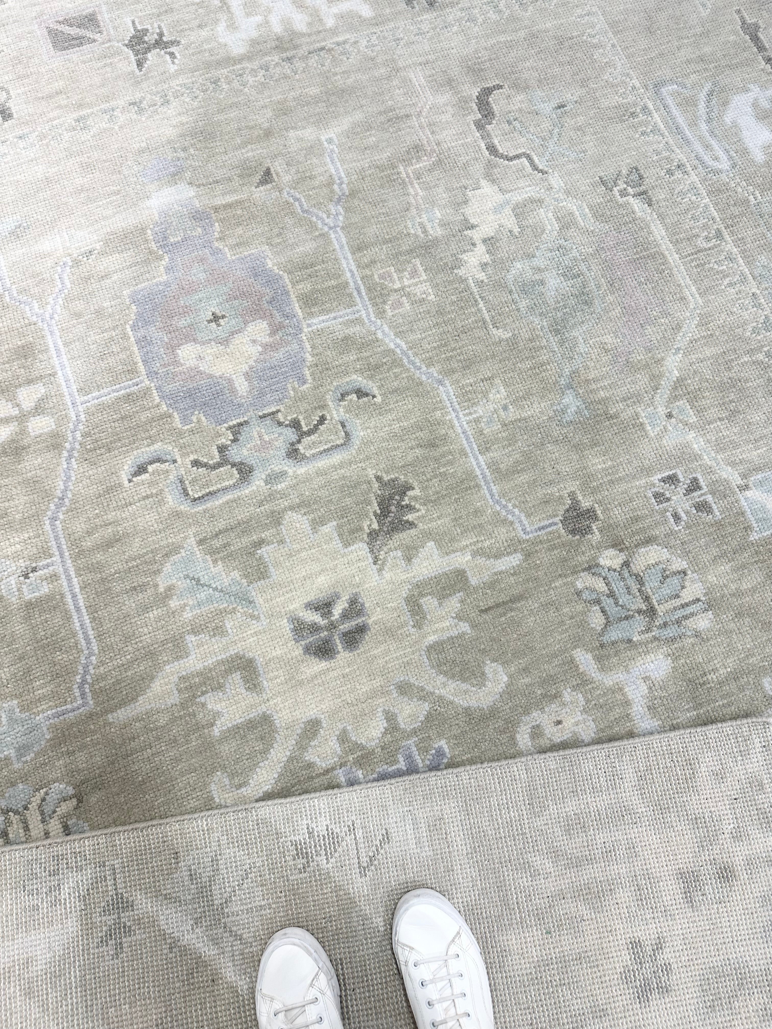 Santa Fe Neutral Green Antique Wash Modern Oushak