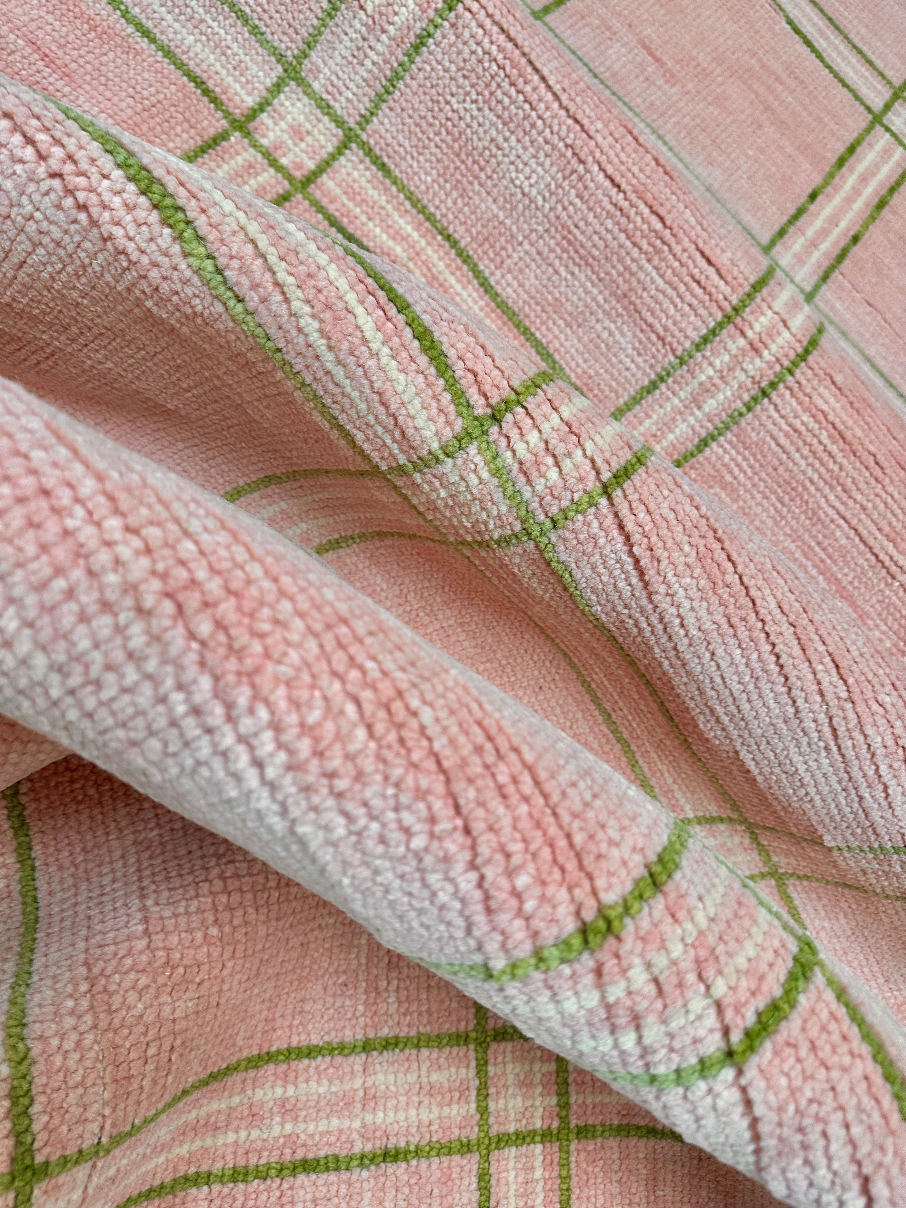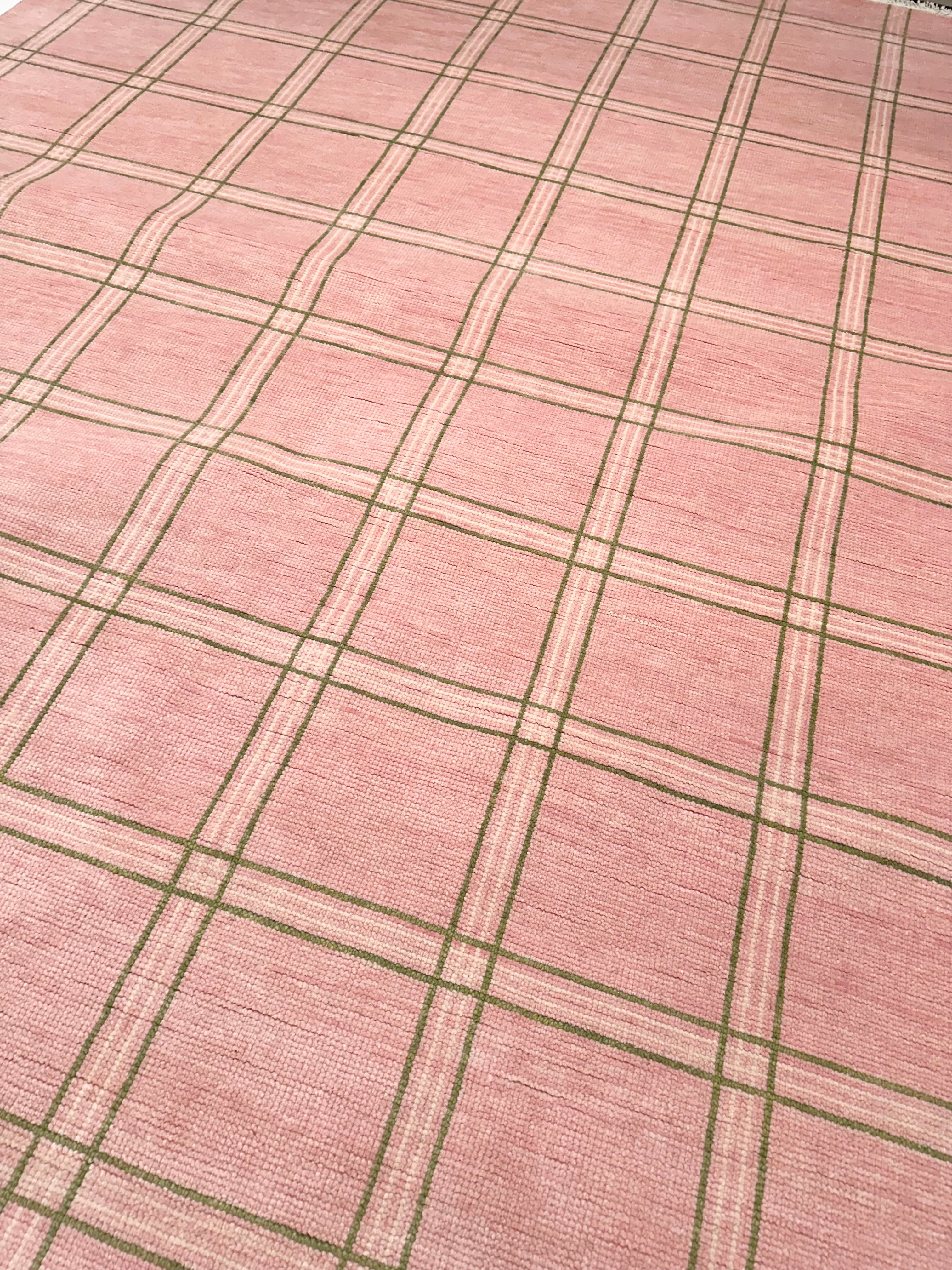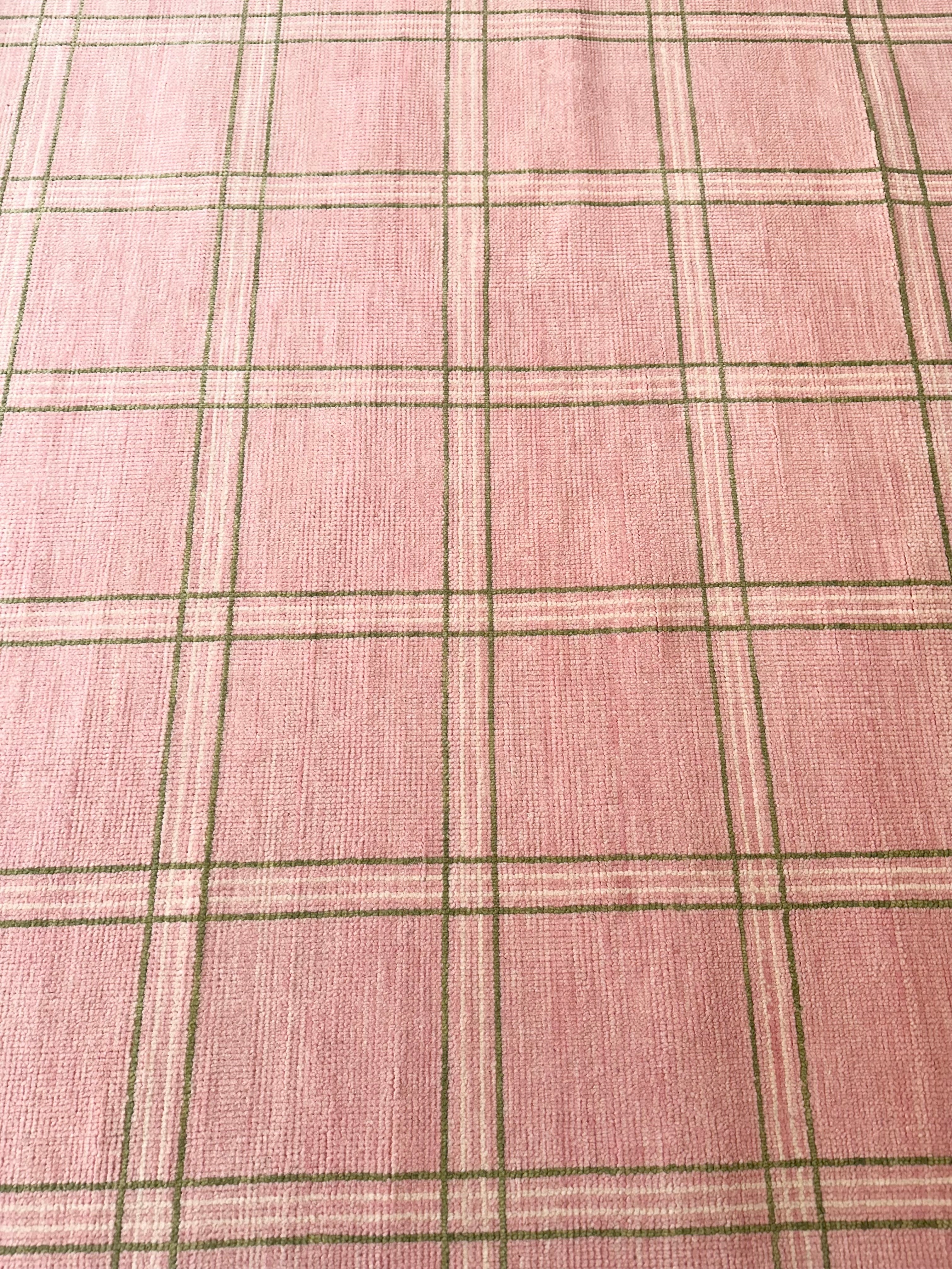 Concord Pink Plaid Hand-Knotted Rug