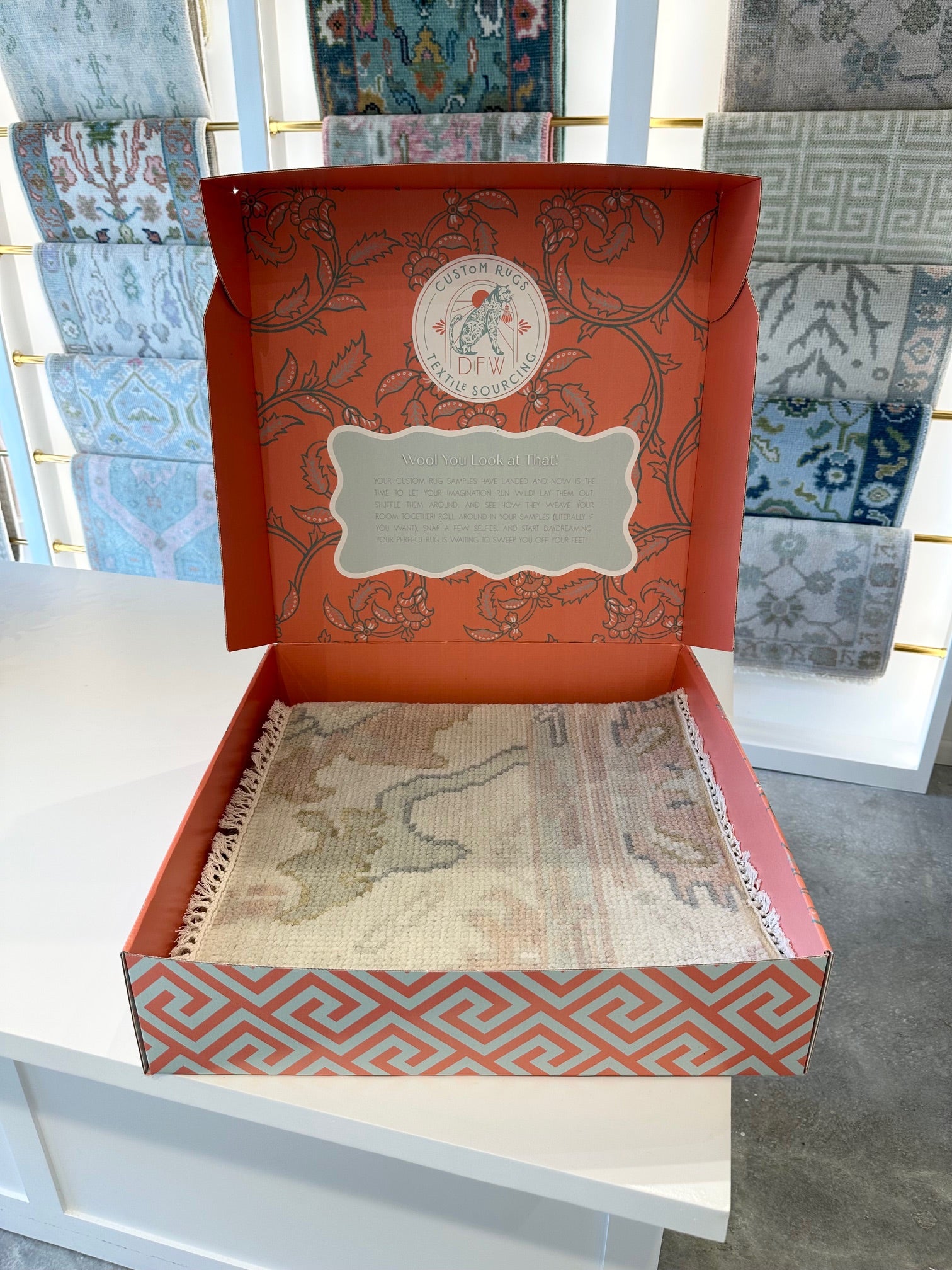 Every sample includes the full range of colors featured in the final rug, giving you a true-to-life preview of how it will look in your space. Whether you're deciding between bold prints or subtle textures, our sample boxes make it easy to narrow down your favorites before committing.